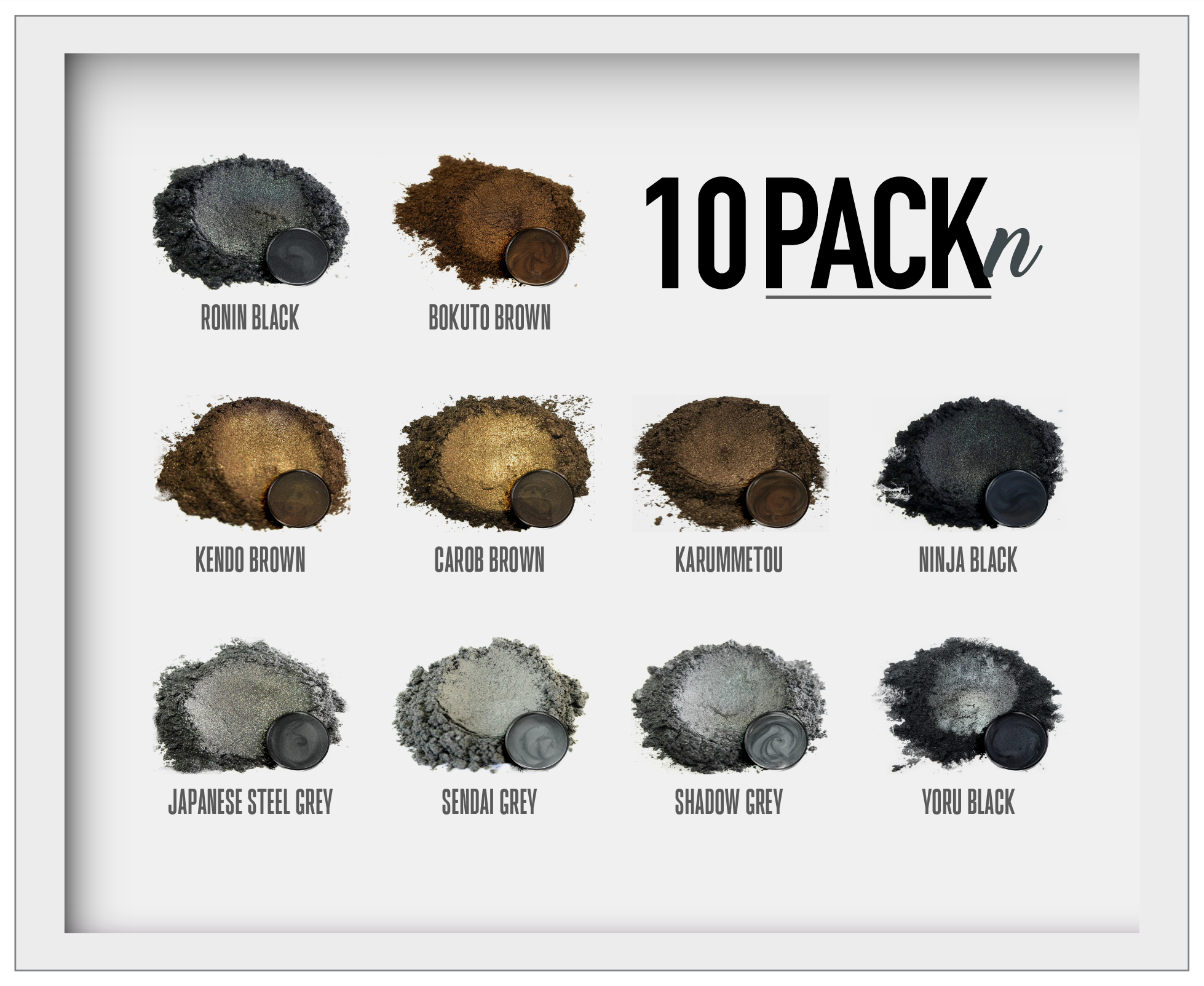 10 Color Pigment Powder Variety Pack Set N - Black / Brown / Grey