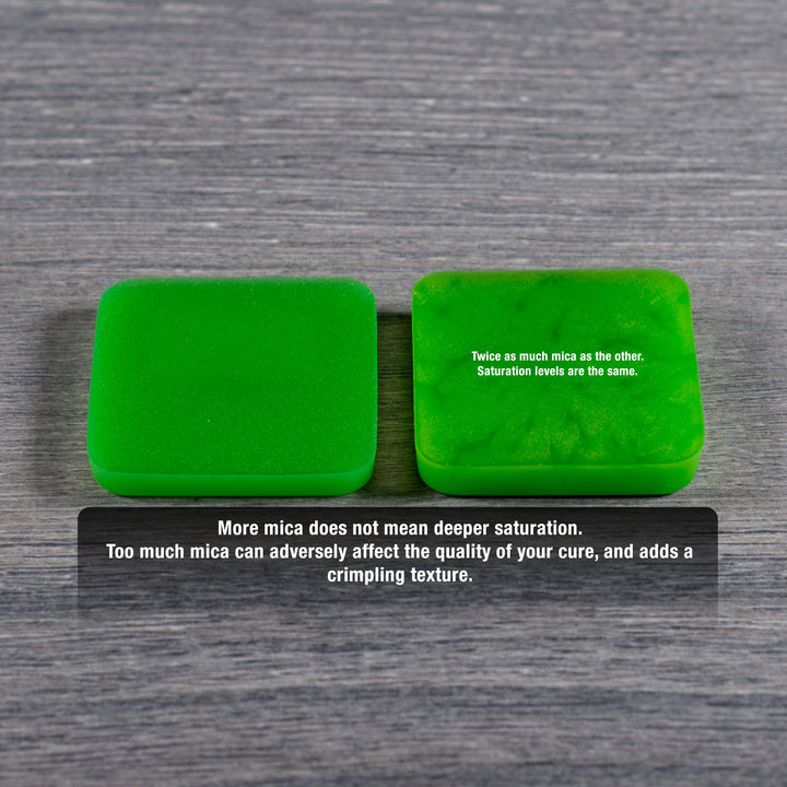 This is the most frequently question asked and rightfully so!! Unfortunately there's no standard calculation when mixing pigments due to the numerous applications, and mediums that our pigments can be used with. I.E. Automotive, Epoxy, Resin, Slime, Candles, Soaps, Fishing Lures, Woodworking, Pen Blanks, Acrylic, Varnish, Clay, Grout, Flooring, Countertops, Cosmetics, Fingernail Polish, etc. the list goes on.