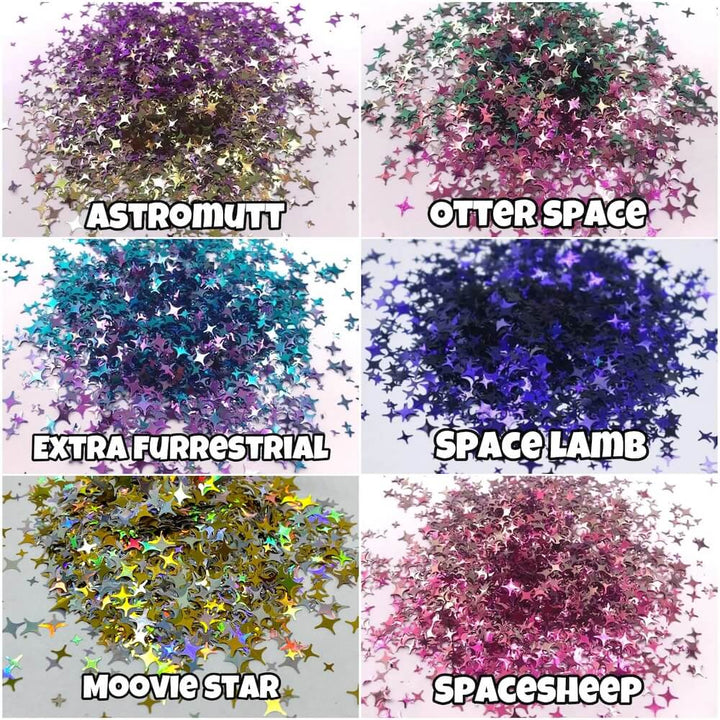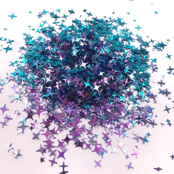 Includes 6 - .25oz Colorshift glitter 4 point stars in a bag: