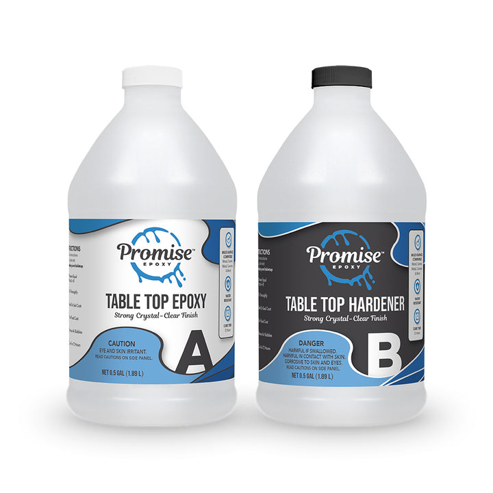 Transform your creative projects to the highest-quality with Promise Table Top Epoxy Resin. This versatile, crystal-clear epoxy resin is designed to meet the needs of artists, DIYers, and home decorators alike. Its user-friendly mix ratio, multi-surface capabilities, and water-resistant properties make it the perfect choice for creating stunning, custom table tops and more.