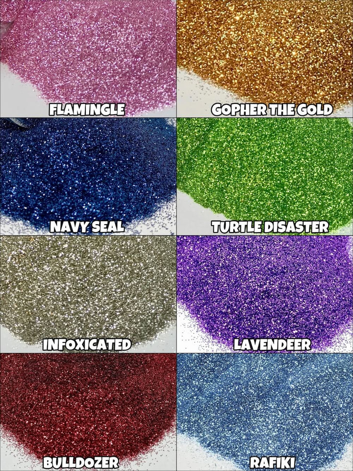 This package includes 8 - 2oz ultrafine metallic glitter colors in a shaker. Colors included are: